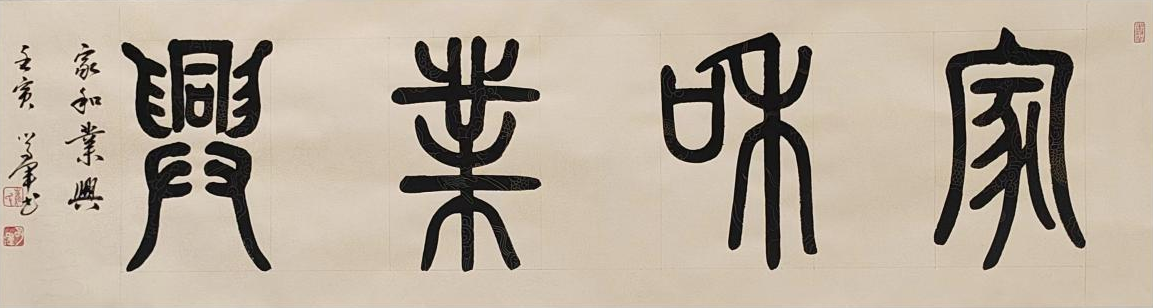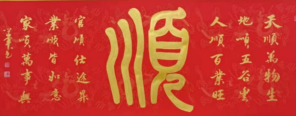 代表作《天道酬勤》 《家和业兴》 《厚德载物》 《室雅兰香》 《舍得》 《家和万事兴》 《和气生财》 《六顺》 《沁园春·雪》 《临江仙》 《善缘》 《江山如画》 《海纳百川》 《寿》《五福》 《童子拜观音》 《精气神》 《诚信赢天下》 《紫气东来》 《宁静致远》《知足常乐》等。