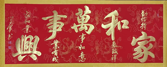 2009书法作品《家和万事兴》在“纪念孔子诞辰2560年获得了金奖并被格力集团董事长董明珠以18万收藏。