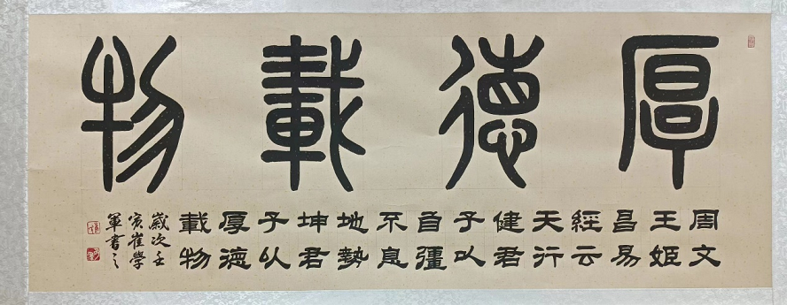 2015年书法作品《厚德载物》在翰墨杯全国书展荣获金奖。同年在北京冀顺春季拍卖会488000元拍卖成交,同年在秋季拍卖会以550000元竞拍成交。而且也是作为国礼馈赠给马来西亚元首穆罕默德,同时发行邮票30万张发往东南亚。