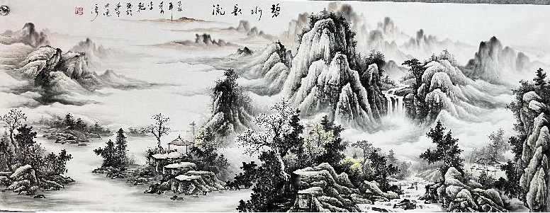 绛山水,中国山水画中的一种没色技巧。即凡以淡红青色彩渲染为主山水画,统称浅绛山水。其方法是先用浓淡,干温变化之墨线勾勒轮廓结构变化之后,再施以淡的赭石,(或掺少稍失砂类)染山石,树木结构处。最后用淡花青类色渲染即在水墨勾勒皴染的基础上,敷设以赭石为主的淡彩山水画。