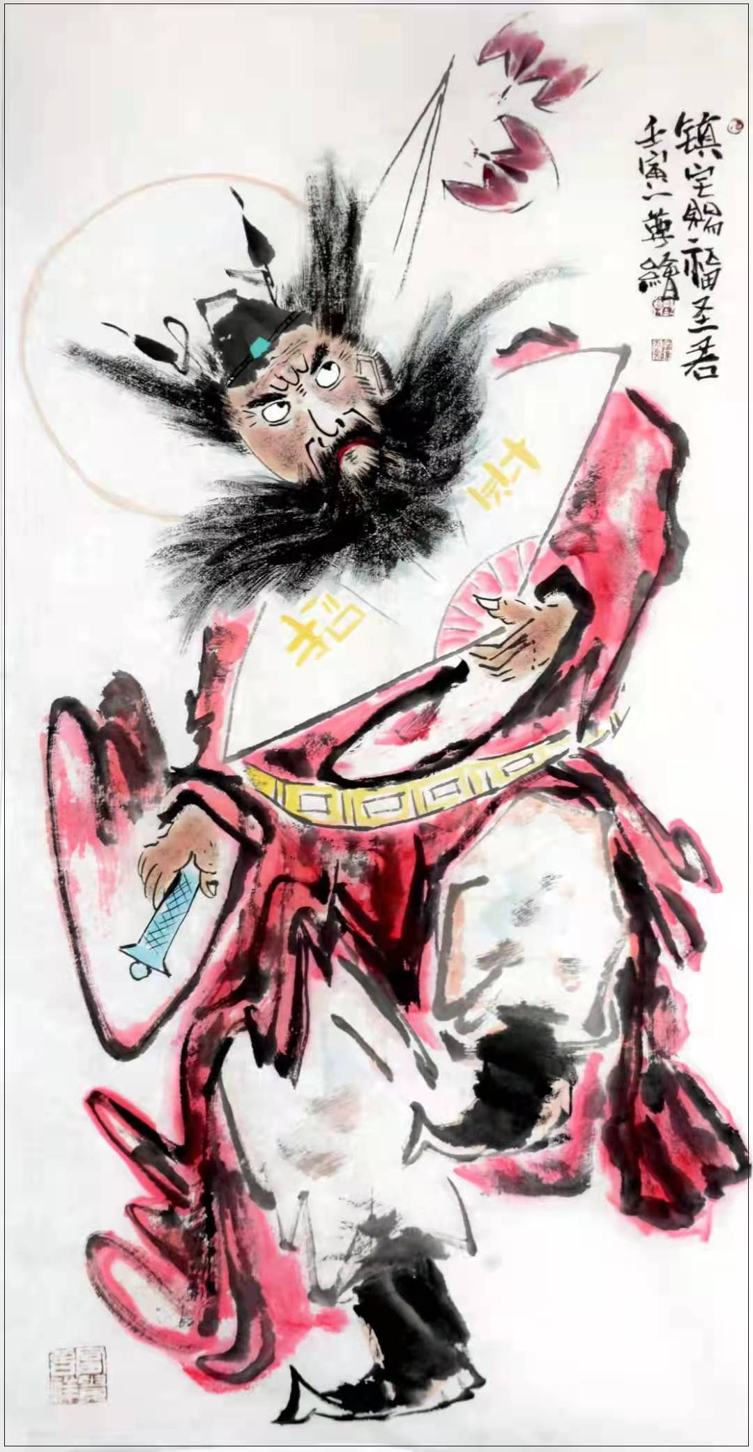 甄尊先生笔下钟馗浩然正气,赐福镇宅独占高魁,是祥瑞之画,是对美好生活的一种寄托,斩尽成功路上一切牛鬼蛇神!