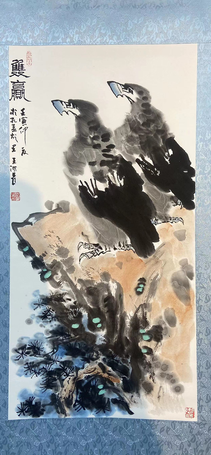 王老师是著名国画大师李苦禅的入师弟子和传人,其代表作《鹰》系列,被国内外收藏家所珍藏,具有“齐鲁鹰王”之美称。