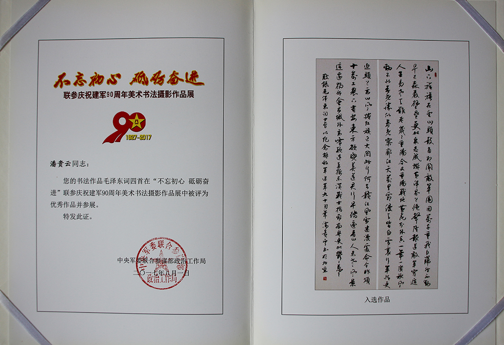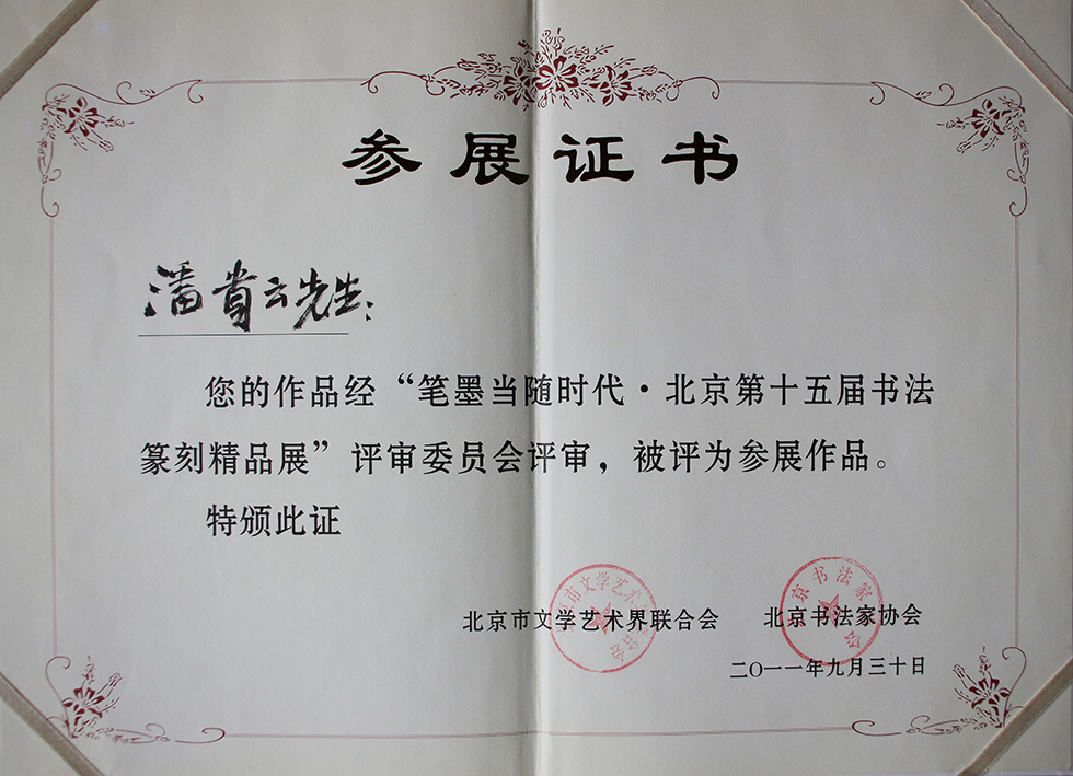 幼热爱书画,擅长楷书和行书。属唐楷和二王书风。曾参加过多次全国性书画展并获奖。在“闽龙杯”北京电视书法大赛中获三等奖;入选全军第五届书法展;入选北京十五、十七届和书法国际双年展;日照农民书画展中获金奖;国家民政部庆祝建军90周年书画展中获一等奖;并参加对边防部队的慰问。曾被评为“国务院国宾礼特供推荐艺术家”、“杰出中国艺术家”、“德艺双馨艺术家”等称号,并载入《中国文化艺术行业名录》。