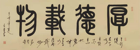 《厚德载物》2014年与欧阳中石共同参加古文字书法展作品;2016年被知名导演张艺谋以36万收藏,2019年被西安博物馆永久收藏。