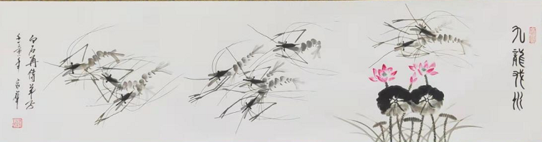 国画类:《五福临门》《九龙图》《龙腾》《荷虾趣》