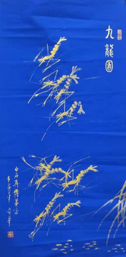 国画作品蓝宣金虾《九龙图》2007年入选全国第一届百杰国画展;2016年上海秋季名家书法国画类拍卖以65万成交。