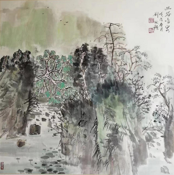 刘延龙,山东青岛人,毕业于西安美术学院,进修于清华美院山水画高研班。现为中国美术家协会会员,山东省美术家协会会员,山东美院客座讲师,中国书画联谊会会员。其所用书法里的笔法,墨法,在虚实相生中表现出灵动的线条之美,墨色之美。