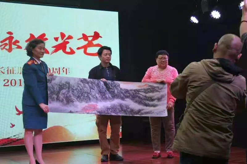 中国文联副主席,中国扇子学会会长崔承顺及中国解放军报主编陈生庚将军的合影