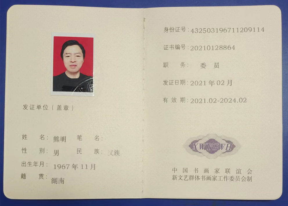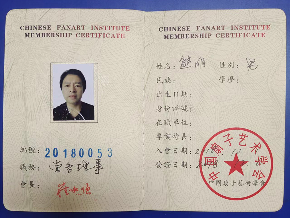现为国家一级美术师。中国书画家联谊会新文艺群体工委会委员。中国扇子学会常务理事,湖南省美协会员。