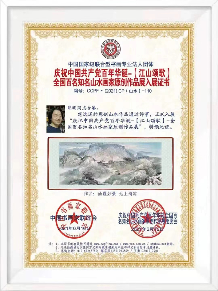 求学于北派山水名师宋雨桂先生和岭南画派蔡德林先生。擅作山水,兼作花鸟、人物、动物。于绘事殚精竭力苦心经营,前追古人,后达彼身。其作品或青山绿水,幽涧鹿鸣。或太古洪荒,悠远苍茫。于混沌中造境,肆意造境,笔墨随心。京开大师评价其作品:气势无边,脉延非凡,熊明水墨,问鼎苍岩!创建《苍岩道馆》,课徒数百。作品广被同道与社会各界人士称道收藏。