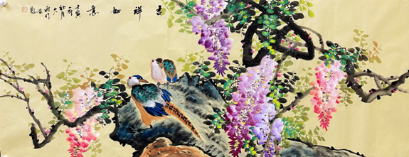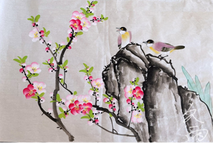 几年来,创作了许多优秀的作品。她的画不仅能够展现出较高的艺术水平,还透露着一种哲学思想,特别是她的花鸟画,她的工笔和写意花鸟造型严谨,刻画入微,线条流畅,用色沉静优雅,风格清丽脱俗,深得宋人花鸟精髓,作品趣意盎然并富有优雅的生活情趣。通过大量的摹写之后,将自己内心的感受通过丰富深刻的笔墨表达出来,将自己独特的见解融合在画作里,塑造了一幅幅清新脱俗的作品。