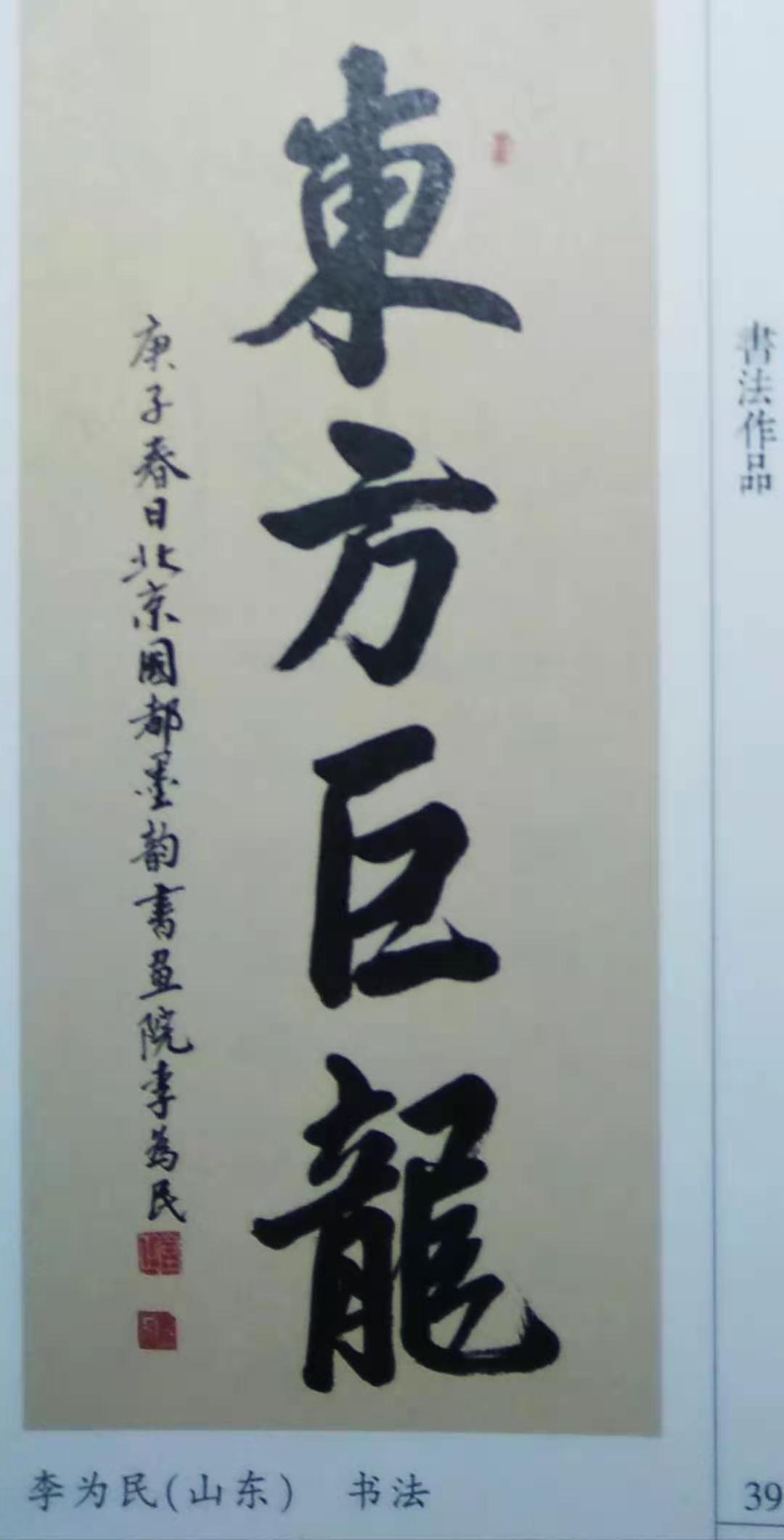 2020年9月参加由北京国都墨韵书画院主办的2020年“国都杯”全国美术书法邀请展。行楷榜书作品《东方巨龍》荣获金奖。