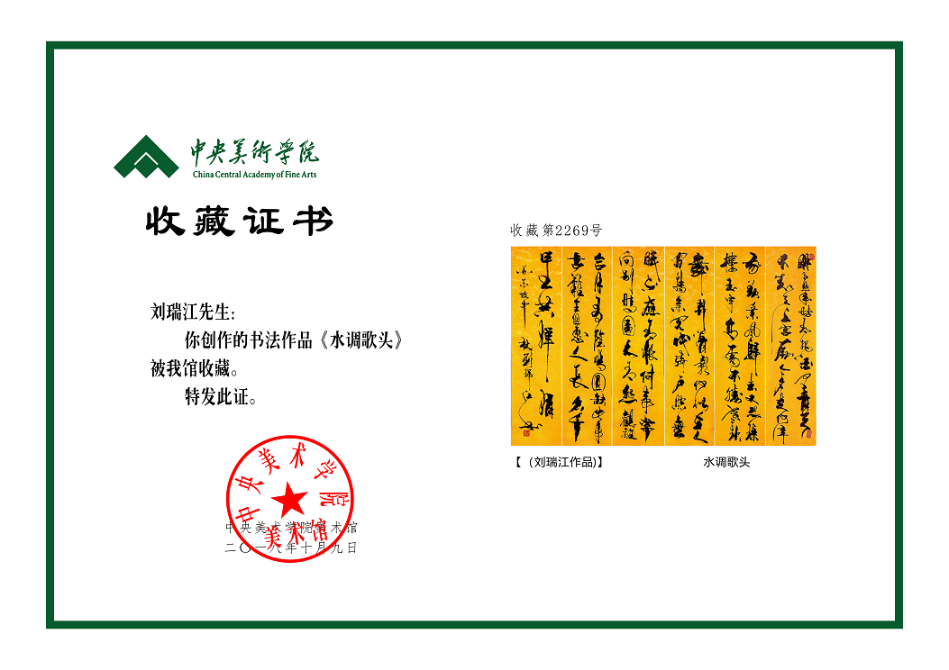 2013年 作品《水调歌头》被中央美术学院永久收藏