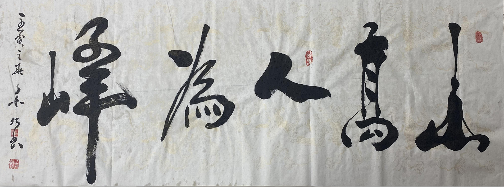《山高人为峰》2008年在第一届长江奖书法大赛中荣获一等奖;2012年《美丽中国》全国艺术名家作品展特等奖;2016年,2017年连续两年入展了古文字名家书法展。