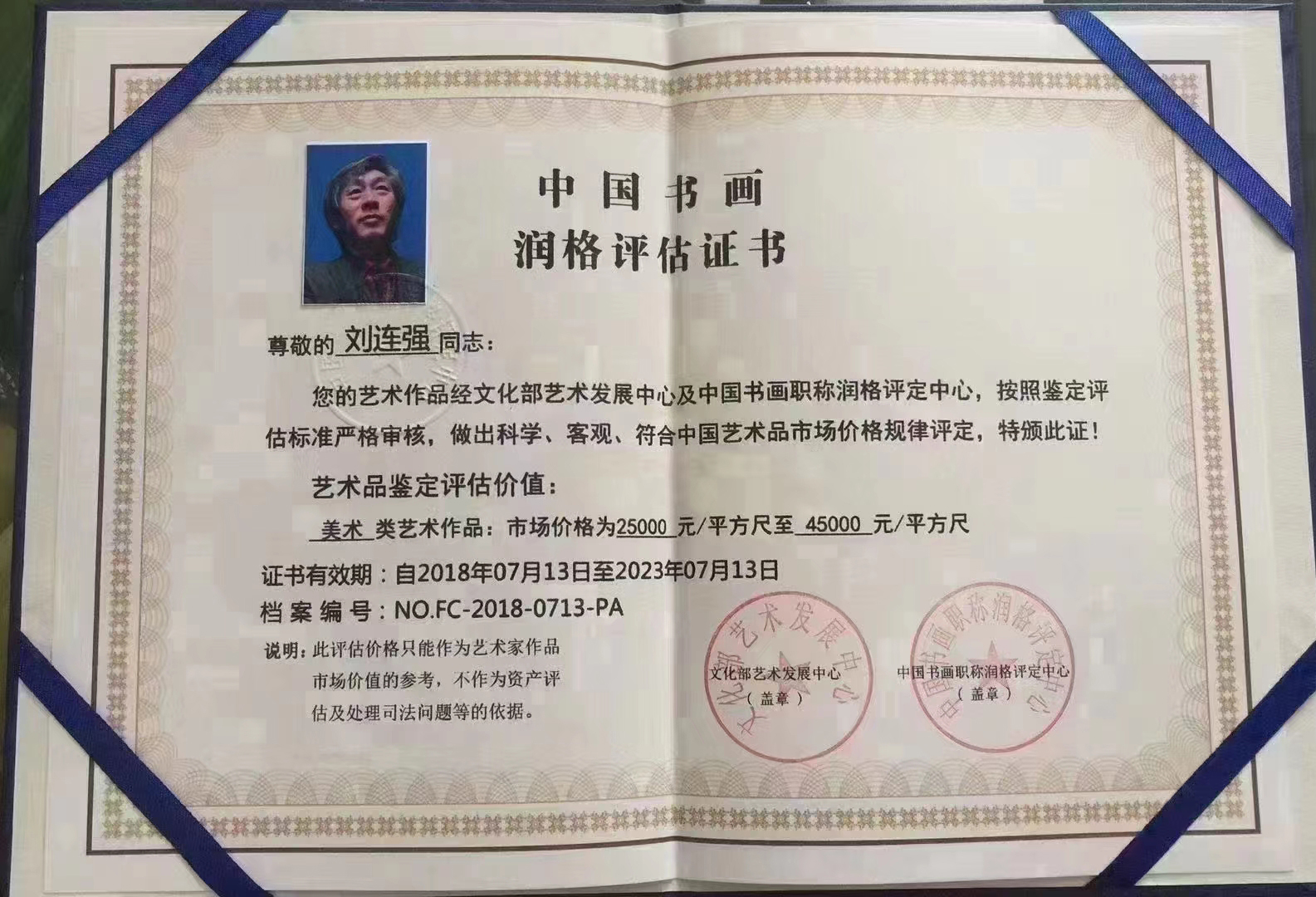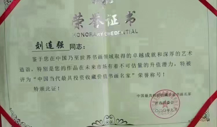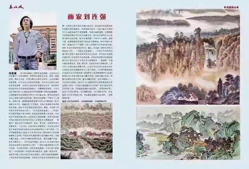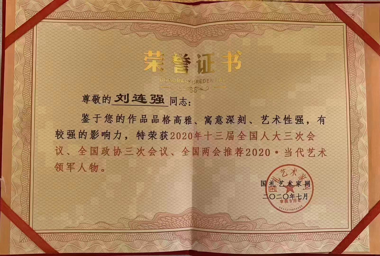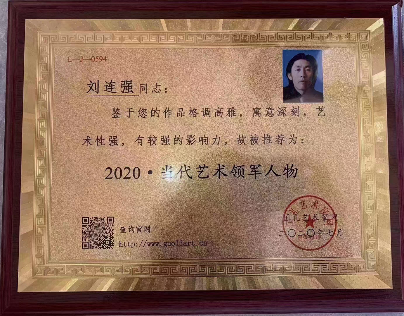 刘连强,文竹职业画家(幼时受家庭熏陶,父亲与叔父都是画了一生的老画家)中国美术家协会会员、国家一级美术师、国礼艺术家、中国书画艺术委员会会员、北京书画研究院理事、中华文化艺术研究会理事、中华文化书画艺术研究会常务理事、北京东方美术馆艺术家协会会员、新加坡共和国新神州艺术院高级名誉院士、特聘高级书画师、中国书画艺术家创作中心画圣吴道子艺术馆理事、东坡书画院理事、上海翰墨艺术展览有限公司山水创作室主任。其作品在报刊杂志上发表书画作品百余幅,89年在威海第一个举办个人画展,威海日报、威海晚报等多家报刊和杂志专题报道,90年骑自行车写生,跑遍山东17个地市,所到之处画院与美术馆均有签章。2003年山东电视台综艺专访,播放。作品被《跨世纪世界书画名家大典》、《中国美术家选集》,《中国当代书画界领袖人物大辞典》等百余多部经典大全收录,其中部分作品被东南亚友人及多家艺术团体收藏。获得北京京都书画研究院举办的中国当代文人书画艺术大展赛金奖、“希望杯”中国书画大奖赛金奖、首届“黄河杯”全国诗书画大奖赛金奖、《东方红》全国书画大展赛金奖、北京东方美术馆艺术家交流协会首届会员作品展银奖等三十多个奖项。《中国书画报报道过2003年6月为抗非典一线的医护人员无偿捐增作品20幅》获得东方艺术研究院金奖书画艺术家、功勋书画艺术家、中国艺术博览优秀艺术家、德艺双馨艺术家、百名书画家之一、百名杰出书画家。《东北人画报封面人物》 2018年12月被中国文化部和旅游部艺术发展中心授予“中国当代最具影响力艺术家”称号2020当代艺术领军人物,中国最具收藏的书画名家。