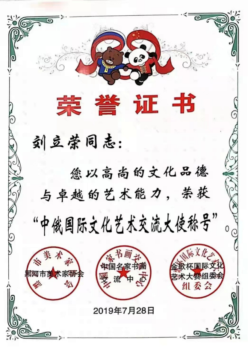 其书画作品被香港、台湾、日本、新西兰、美国、俄罗斯等国际友人和博物馆收藏。刘立荣现为《收藏天下》杂志社