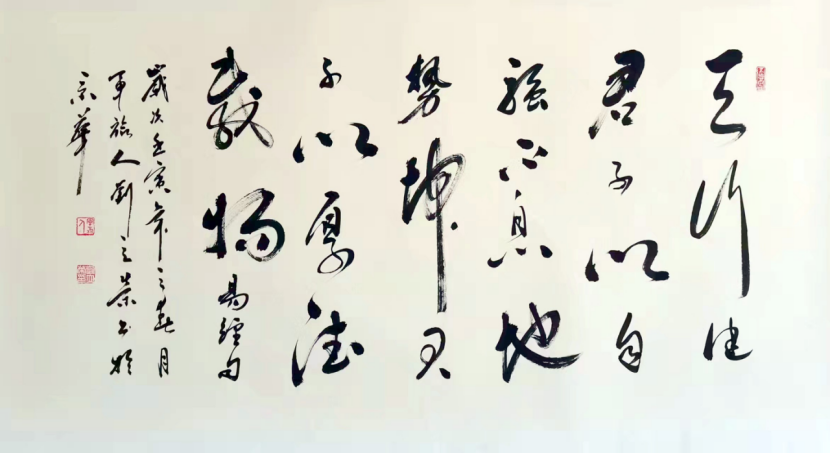 书法师从欧阳中石、沈鹏诸大师,擅长行草、金字书经;国画效法齐白石,以花鸟为主,也涉掠山水。几十年来,在潜心钻研书画艺术的同时,广泛涉猎篆刻、刻字、雕塑、摄影、盆景、根雕、装饰、布展、园林艺术、民间工艺设计等艺术门类,均有较深的造诣,并力求使诸艺术门类融会贯通,篆刻作品近千余方,并刻了百名将军书画印。逐渐形成了诗、书、画、印、刻字为一体的中国书画独特风格。