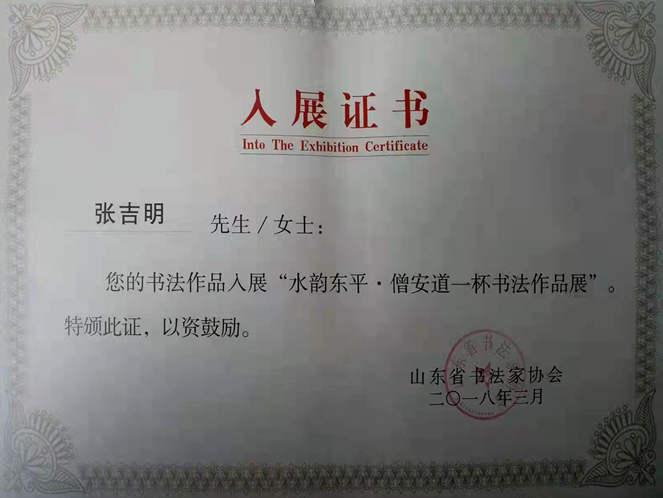 先后参加中国书法家协会培训中心,刘文华、洪厚甜导师班,山东省书协倪和军导师班学习。
