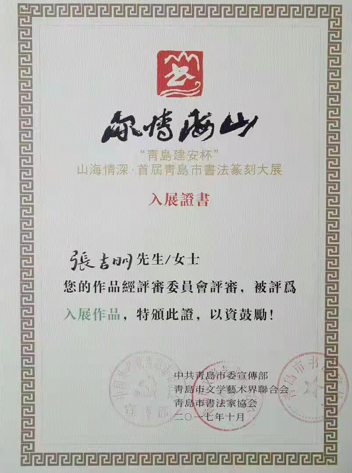 青岛建安杯山海情深首届青岛市书法篆刻大展。