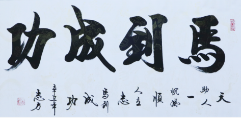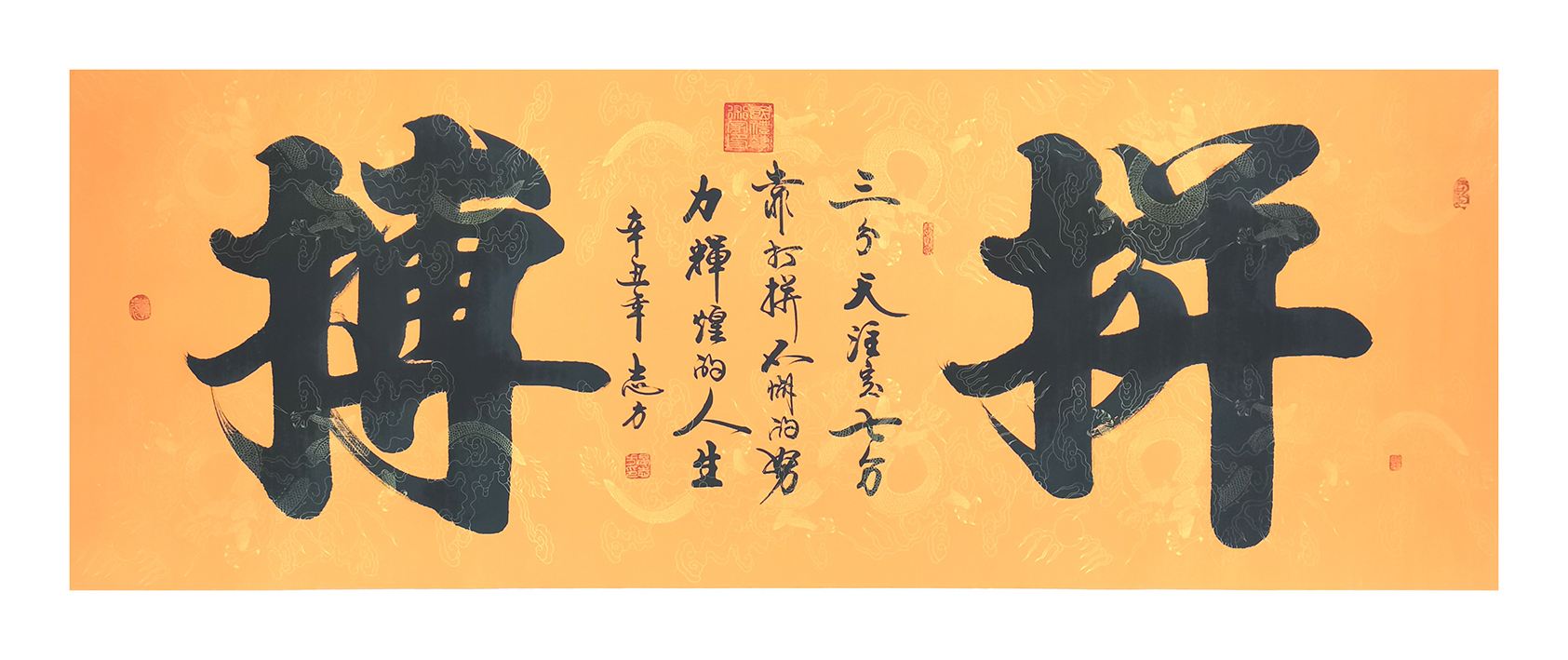 晏志方的书法作品辨识度极高,他将字形扁方、左右分展的隶书和左右挥洒、上下贯穿的行书相结合,形成自己独树一帜的隶行结合的风格。