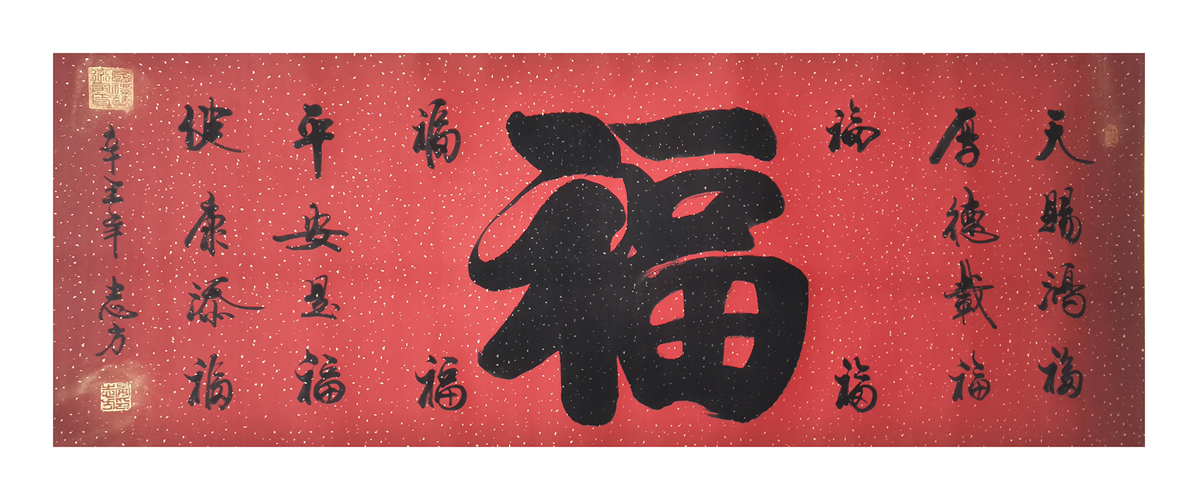 2017年其作品《九福》第三次在国际孔子书画展荣获金奖并被组委会永久收藏