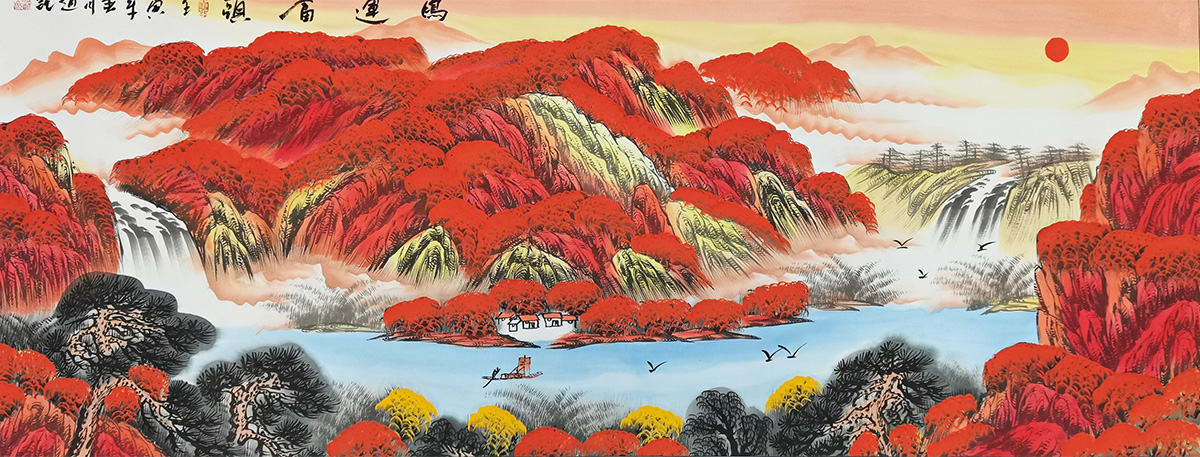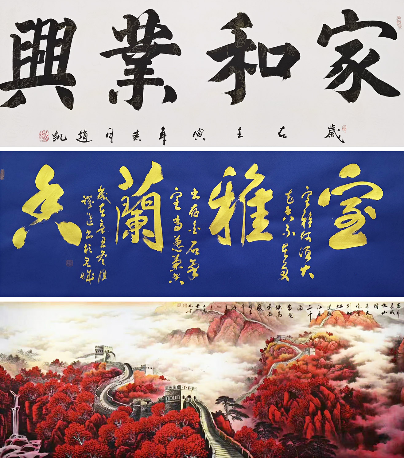 作品《锦绣山河》悬挂于北京机场,被众多企业家收藏。