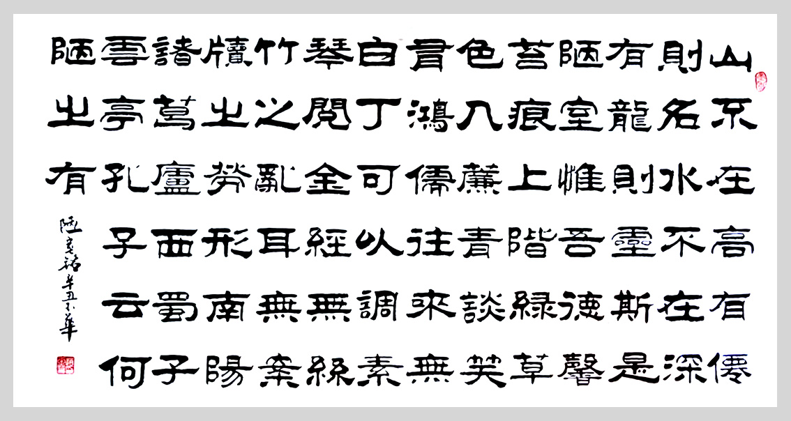 赵玉华书法作品,汲取汉隶之营养,主张在继承传统基础上,逐步完善具有个性化探索,形成行笔沉着,点画苍润,气韵流畅的艺术特点,风格古朴凝重,具有极强的文人气息。