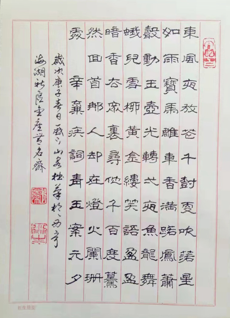 陈衍生(1946— )字山泉,号松子,山东济南人。自幼酷爱写写画画,从师山东著名书画家关友声、黑伯龙、张立朝学习书画,后又得吴作人、潘天寿等名师教诲,打下了扎实的传统功底。1964年曾有四幅山水画作品被山东选送到欧美展出。1966年参加青海建设兵团,在马海、大格勒开过荒,种过地。1973年调到四团中学任教,教学期间,创作了许多军垦生活的作品,其中《戈壁水长流,荒滩变绿洲》在省级展出中得到好评。1979年被分配到循化县文化馆工作,曾任文化创作员和馆长。在循化县工作期间成立了“积石书画学会”得到省级领导支持。每年举办美术,书法培训班,和与省级及兄弟县市举办书画展览,得到了上级领导的高度评价。在县上还举办了多期撒拉族妇女刺绣培训班,为推进少数民族文化做出了一定贡献,多次被评为优秀党员。在循化期间邀请参加了全国首届山水画家作品展,并出画集。书法作品代表作辑入《二十世纪中华书法篆刻集萃》。《千帆竞发》被中国美术馆收藏,其它被新四军纪念馆、东峰碑林、瞿昙寺等收藏刻石。多年来培养了数百名书画爱好者,他们活跃在省内外各个行业。1993年调至西宁市城西区文化馆任馆长,除做好行政工作外积极组织书画活动。1998年被聘为省老年大学教师至今。