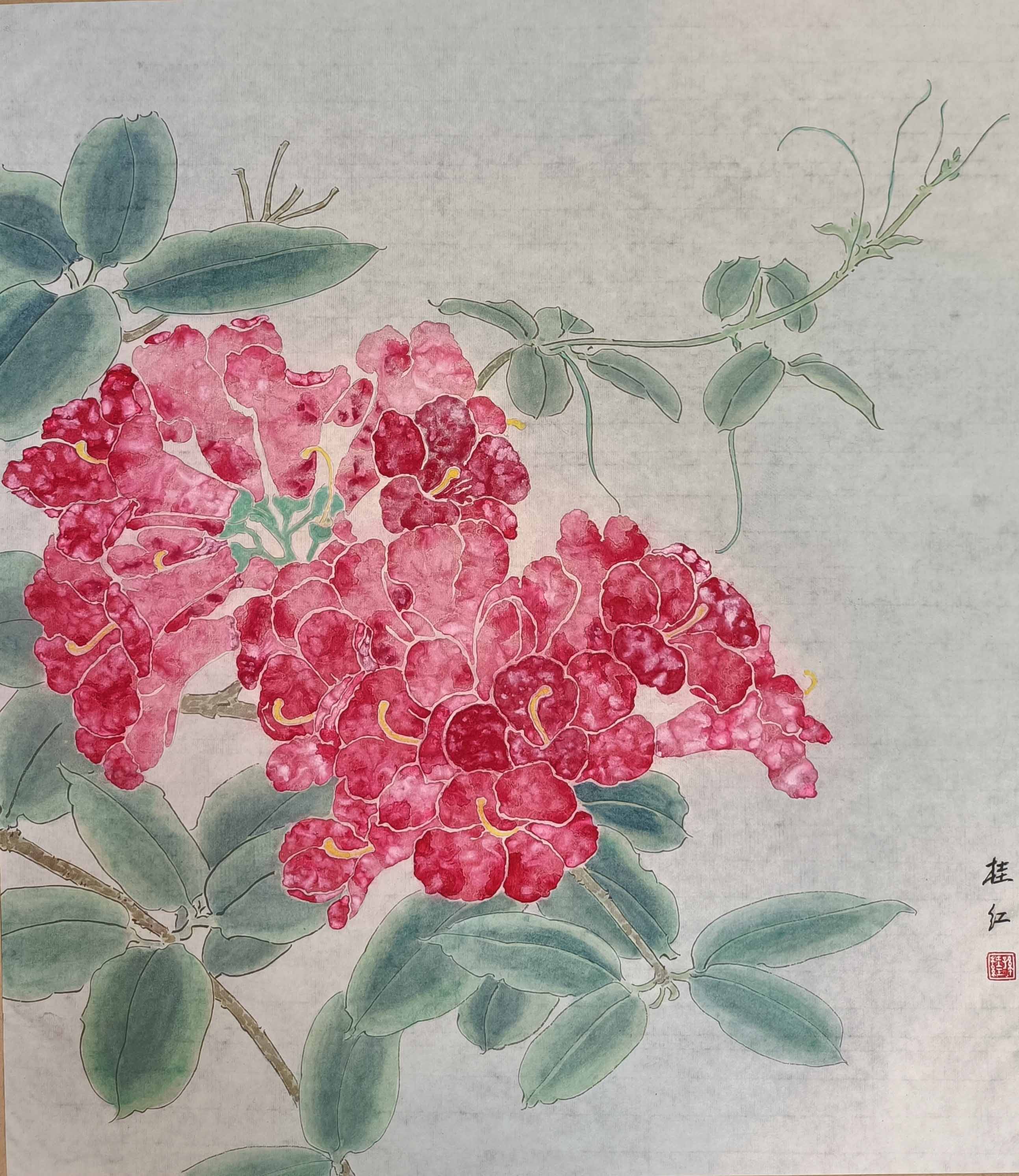 2019年作品《花开富贵》以590000拍卖落锤所拍资金全部捐给希望工程