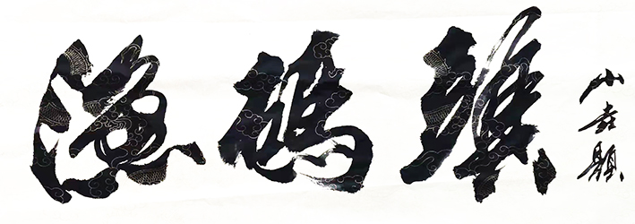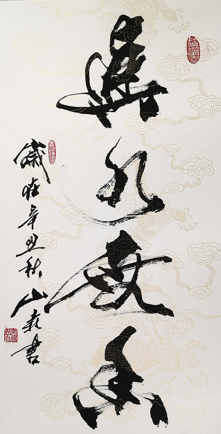 几十年来,山垚踏遍名山大川、赏异景奇观,听悬崖瀑布、悟奇妙变幻,见鬼斧神工,从大自然造化中,寻求灵感,始终沉寂在书道书艺书法修行中,博取众家之长,书写特点,大开大合,八面出峰、四面呼应,顿挫张驰有度;字里行间处处体现黄山之妙、泰山之雄、华山之险、恒山之灵;既有气有势,更有魂有魄,灵动而有根,飘逸不失厚重,随性且有度,道法自然,有法无法,骨子铭刻着先生武中奇影子,形成了山垚自己的书写风格,自成一体。