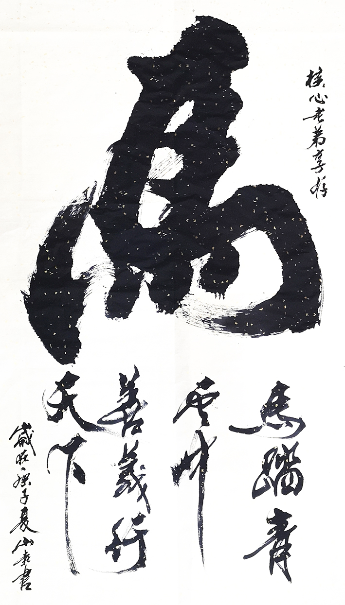 山东诗词学会顾问、原山东大学文学院副院长,山东诗词协会付主席耿建华教授观看山壵作品和现场泼墨,即兴赋诗一首,写下观后感赠予山垚: