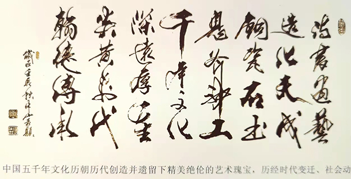 作品多次由中国邮政出版制做邮票,邮币,邮币卡,明信片,大型邮册,国际国内机场邮局发行,书法作品被各级政府领导。外交使节出访,外事交流,做为礼物,代表中国文化名片,赠予外国政要,社团机构,在美日加澳及东南亚有着深远的影响。