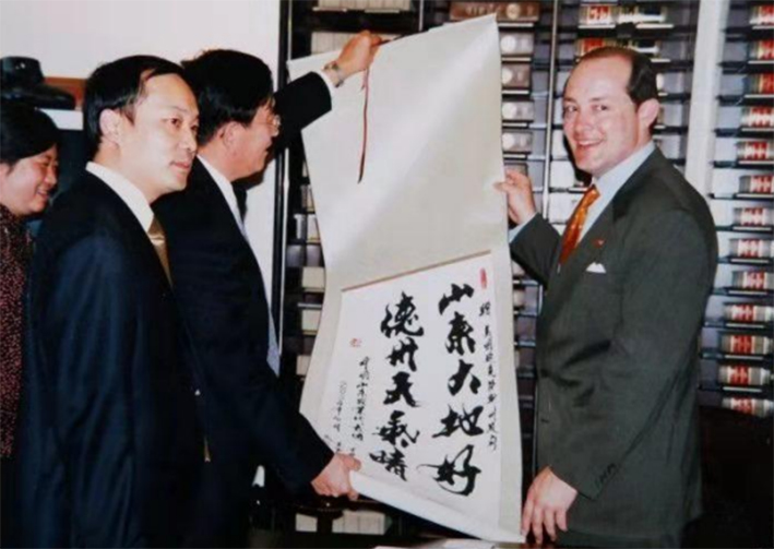 成绩斐然,宾朋四海。自2003年起,每当省主要领导出国访问,都约请山壵为其准备10至15幅书法作品,做为外交礼仪纪念礼品相赠。比如,美国华盛顿农业部、纽约总领馆、支加哥期货交易市场、得克萨斯州州务卿、迈阿蜜华人总商会、洛杉矶、日本东京总领馆、加拿大、新加坡等国家和地区,都留下山垚许多笔墨。 2005年美国台胞侨领寇崇荣先生进京拜见国家领导时,专门从美国传真题稿,邀请山垚书写:“吴家有女,举国心仪”,做为拜访领导礼物相赠。2006年世界著名摄影大师、法国皇家摄影学会主席“叶亮先生”在美国见到山壵墨迹,久不忘怀,在出版自己作品集,特邀请山壵前去洛杉矶“叶府”现场题写:“叶亮摄影艺术”,用于出版发行作品书集的标题。