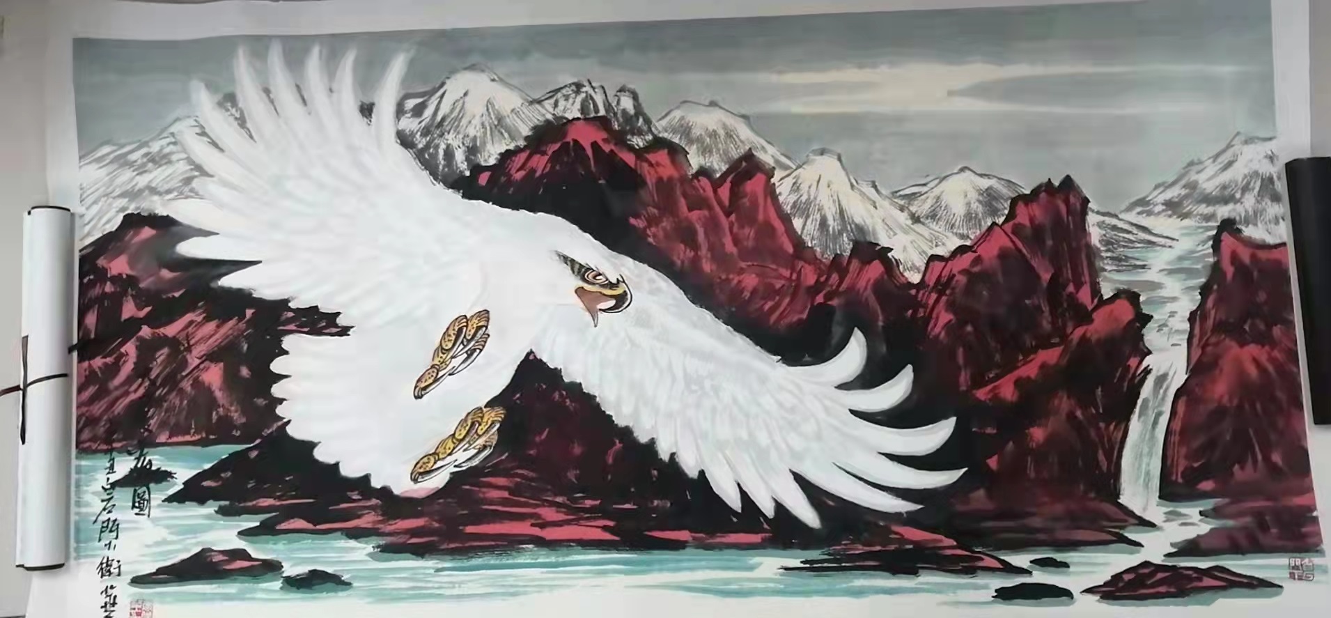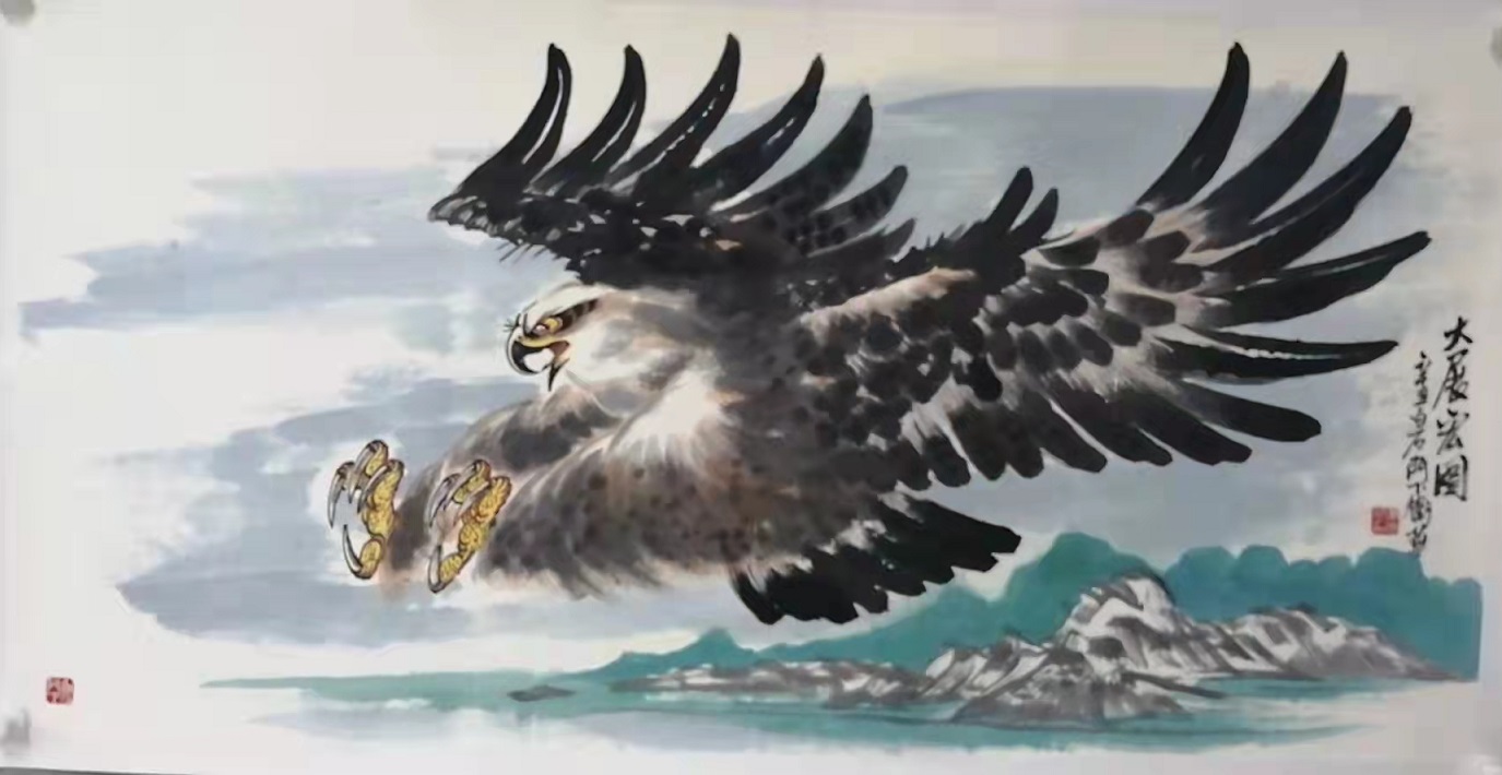 作品《百鹰图》长卷,《大展宏图》在乌克兰国家艺术中心分别拍出35万,21万,创该国拍卖最高纪录。