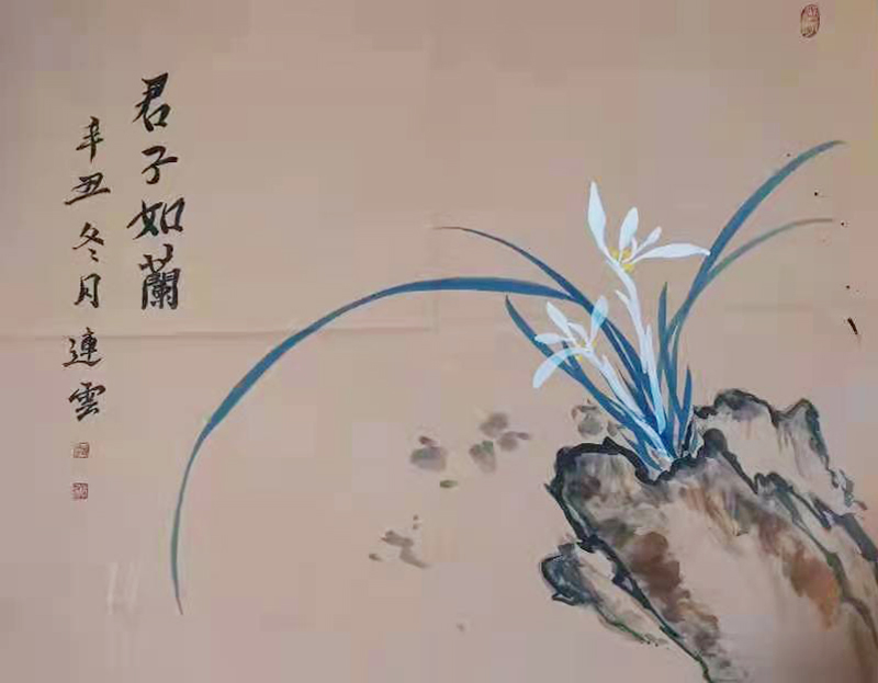 单连云,女,字珍蘭,斋号蘭泉斋。1960年生于济南章丘,现住山东济南,已退休。退休后学习国画,曾在济南市老年人 大学囯画花鸟班学习4年,同时在济南市文化馆国画花鸟花班学习2年,在济南老年大学开始学习书法 (行草)1年。2020年9月跟随中国艺术家展览馆馆长、幽兰堂创始人、著 名画兰名家写兰圣手韩 正民导师学习兰花创作,并获初级班、中级班、高 级班三 级连跳,研习国画兰花,喜获佳绩。
