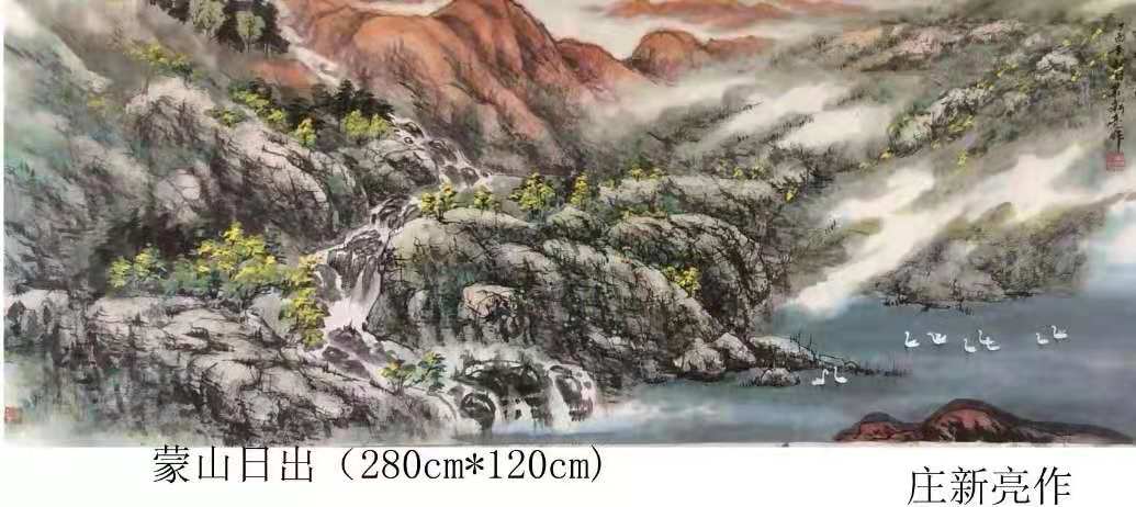作品巜孟良崮上红旗飘》、巜巍巍太行》两幅8尺山水画,反映再现了革命战士英勇杀敌、浴血奋战、保家卫国的壮观场景,被台湾庄氏博物馆及中共济南党校所收藏。