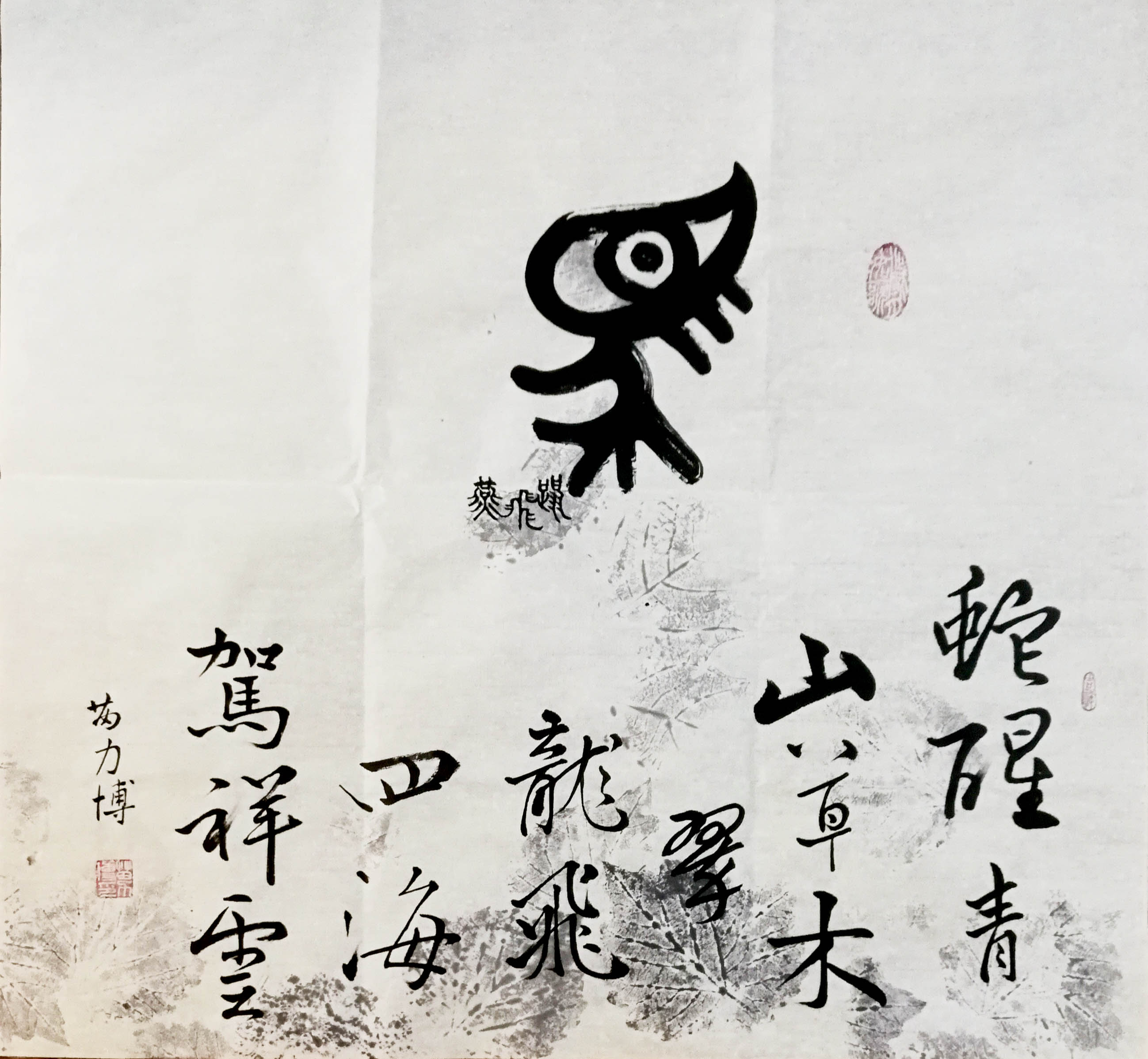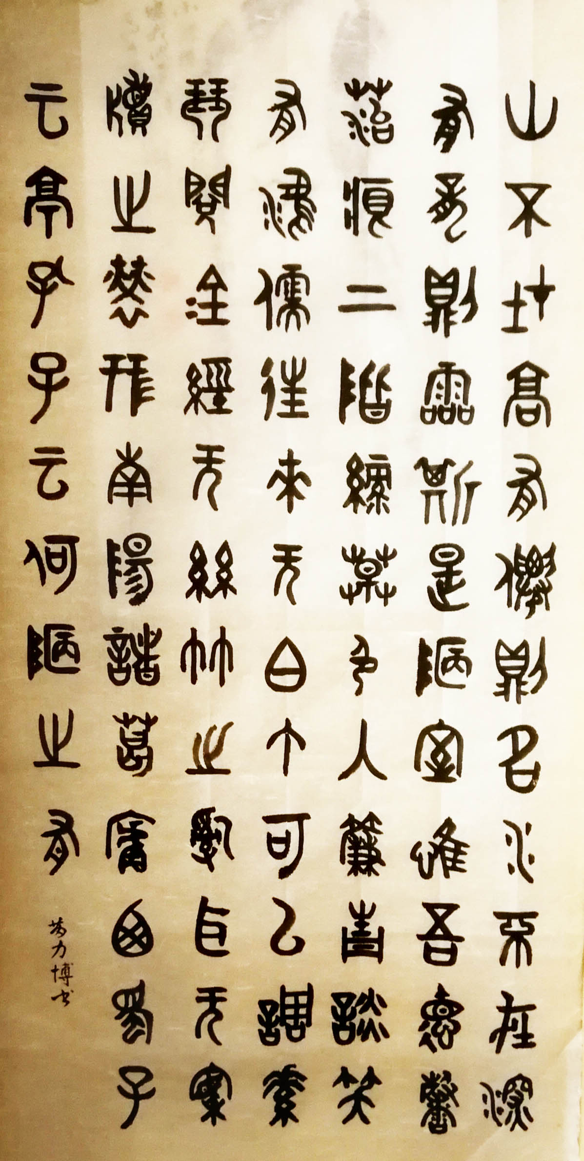 自幼爱好书法,初学颜真卿楷书,后上溯汉魏(石门颂)(张猛龙)等北魏元氏墓志,篆书李斯、邓石如、吴昌硕等,受前辈大师影响,潜心研习铁线篆书及甲骨文、金文、瓦当文、石鼓文、大篆、小篆等。