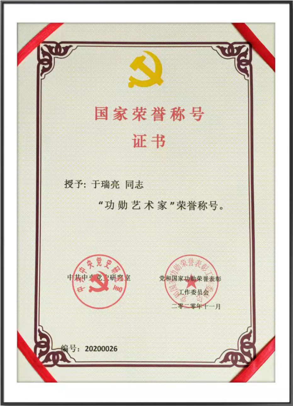 2020年,4月中华人民共和国文化和旅游部授予“艺术界抗疫英雄”称号,11月在中共中央党史研究室举办的百年华诞书画展中授予“功勋艺术家”国家级荣誉称号;