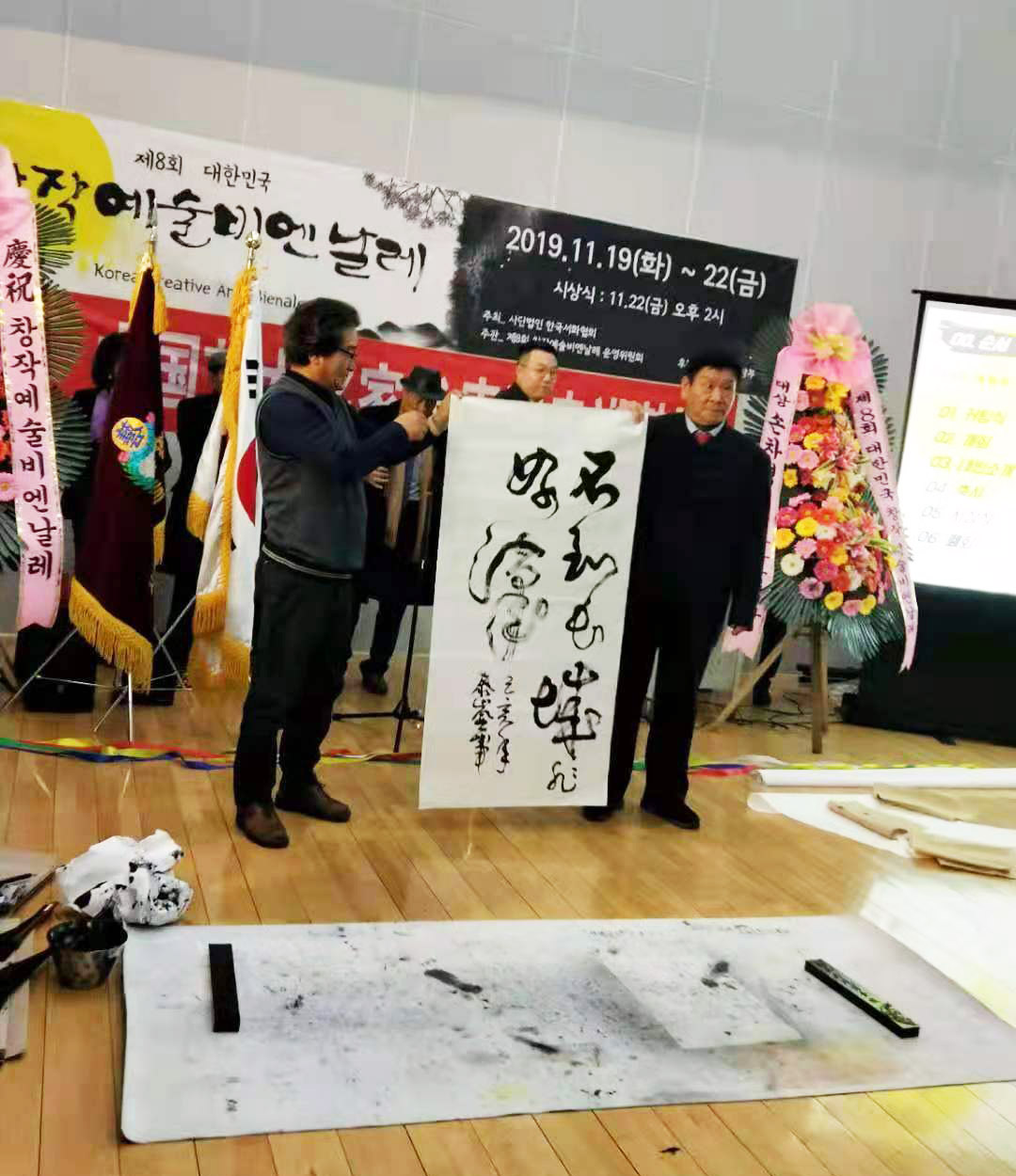 2019年,9月在三国巡展作品后被中国网络咨询台评为“中国书画顶级大师”,11月在赴韩国首尔大学书画交流中获金奖被授予“中韩两国文化艺术交流大使”;