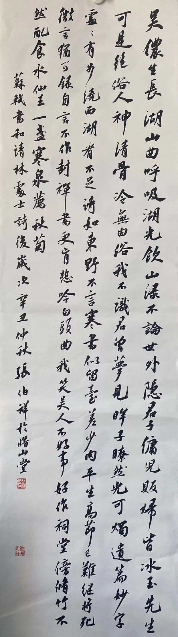 我想,如果没有书法,伯祥会是怎样的活法呢?不知道!人的一生,有一个高雅的爱好,有共鸣,有成绩感,有领会之后的得意,有历史感,还有比这更好的事情吗!