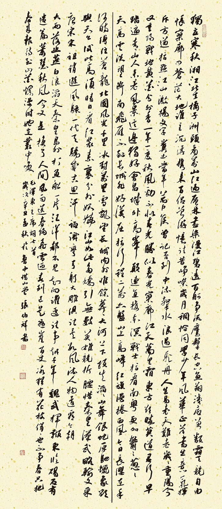 伯祥在固守与变化之中,他从苏东坡的经典的法帖中延伸出的书法气象,也还在发展变化之中,深入传统的本身就是再造传统。伯祥以他的理解与实践,诠释传统与当代精神的结合,诠释一个人的精神历程。