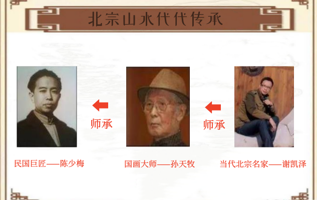★北宗山水,自唐代画家李思训开派以来,代代相传、艺术香火旺盛,出现过很多大家,例如古代有北宋画家郭熙,南宋画家李唐,近现代有陈少梅、孙天牧,当代有谢凯泽!