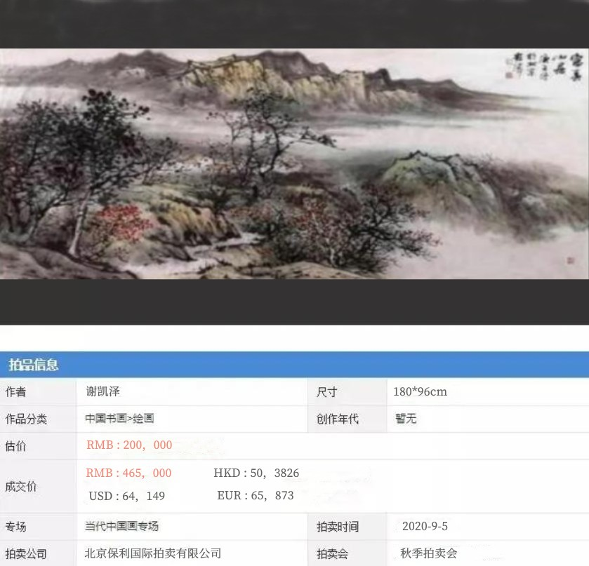 ★当代北宗山水画“少壮派”领军人谢凯泽作品价格每年攀升,让收藏他作品的藏家“惊喜连连!被权威机构称为“2020年最有收藏潜力的艺术家、21世纪最有价值的北宗山水画画家“!