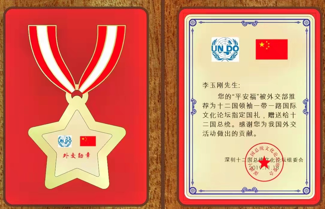 2021.9月,李玉刚被联合国全球可持续发展论坛组委会聘请为副主席和签约艺术家,平安福指定为外交礼品,李玉刚携平安福可以参加组委会组织的各种外交活动和国家领导人会议。