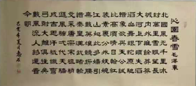 2018年书法作品《沁园春雪》在纪念毛爷爷诞辰125周年书法大赛中获特等奖。其作品以88万的价格被香港富商收藏。