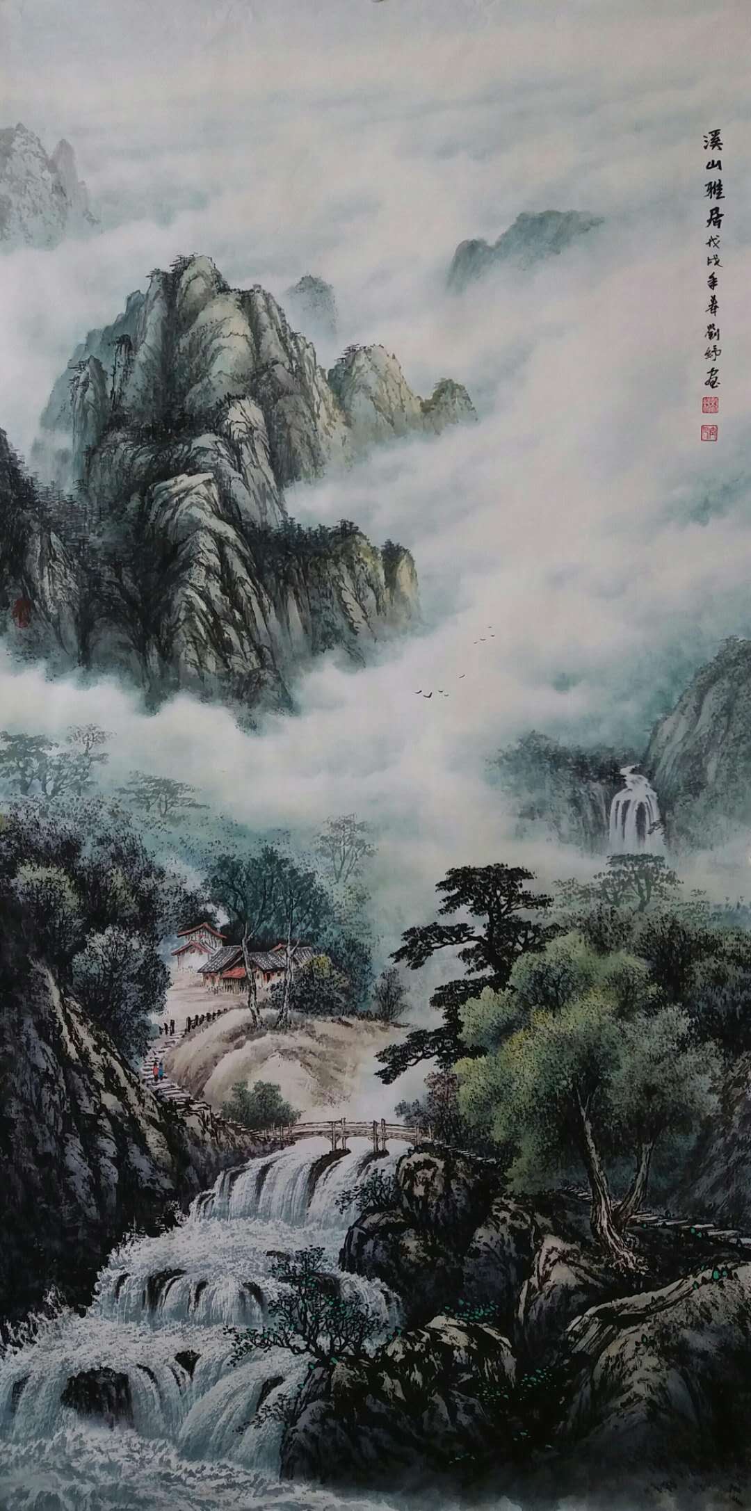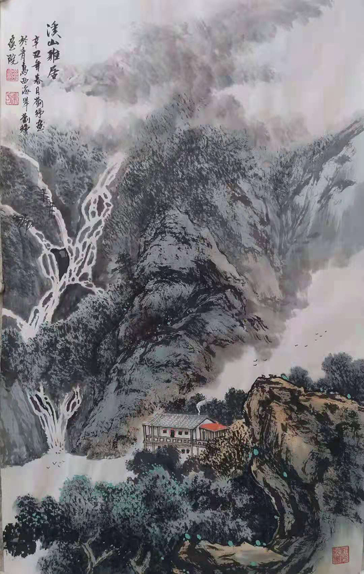作品《溪山雅居》2017年香港职业书画家协会举办大赛荣获金奖。