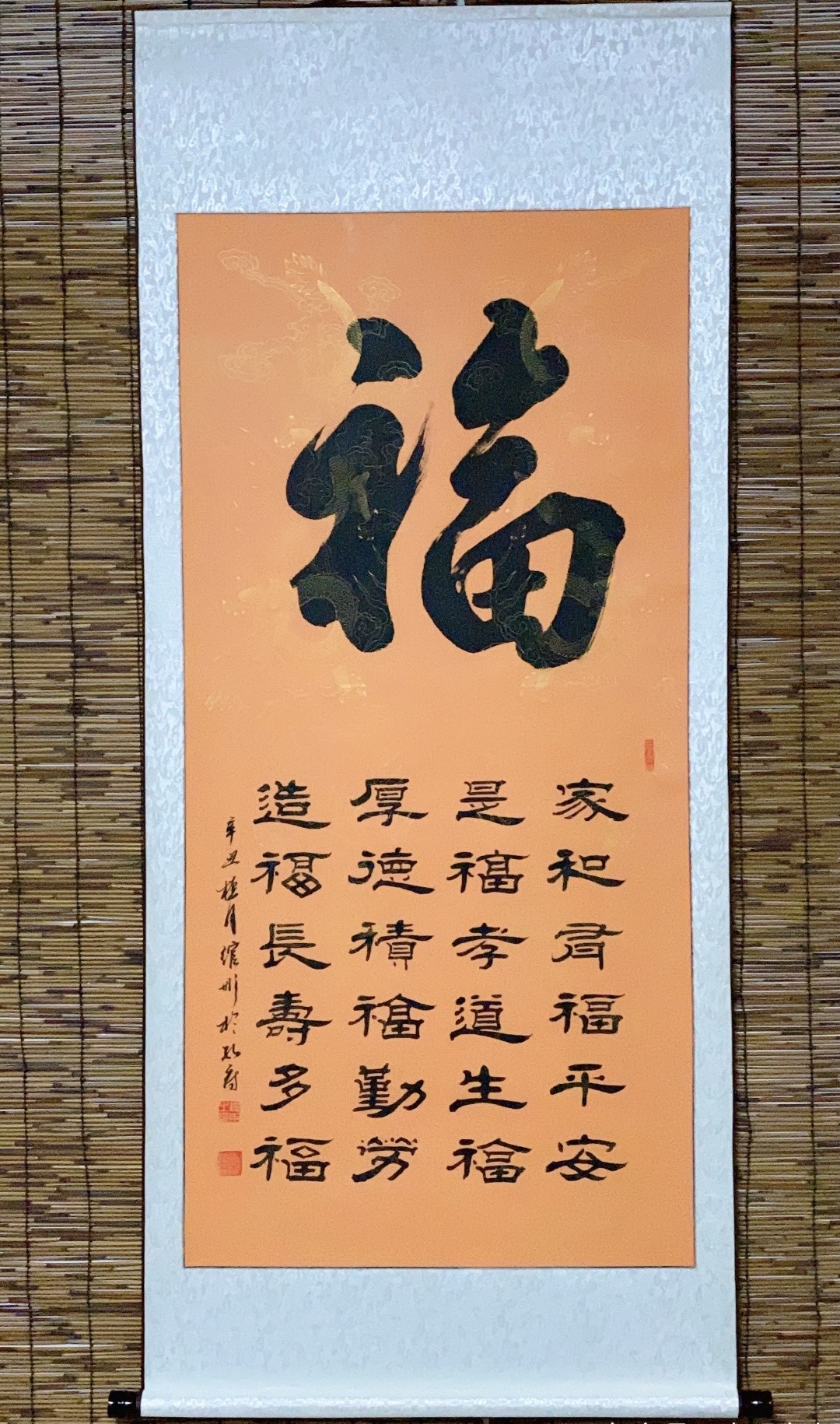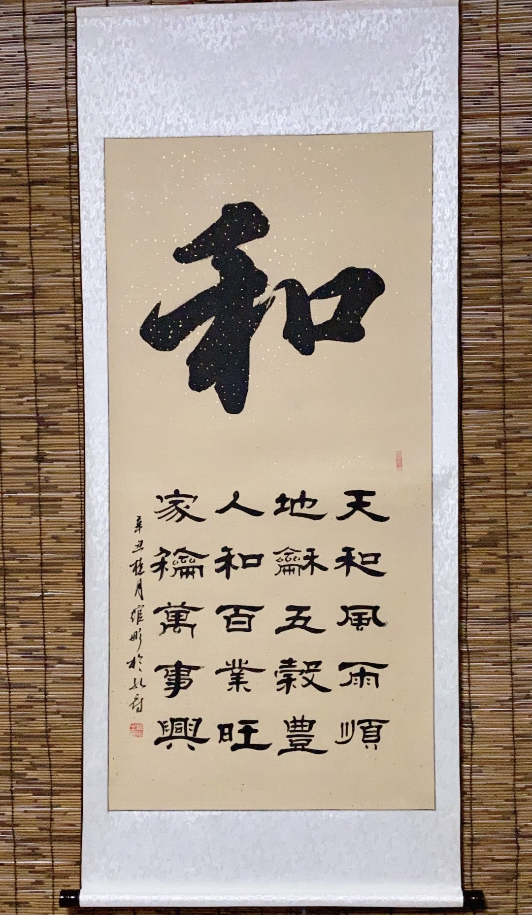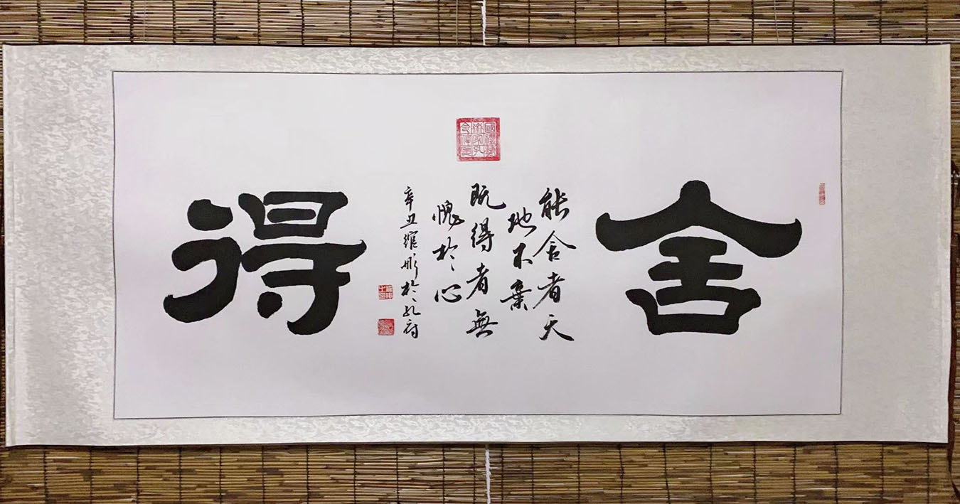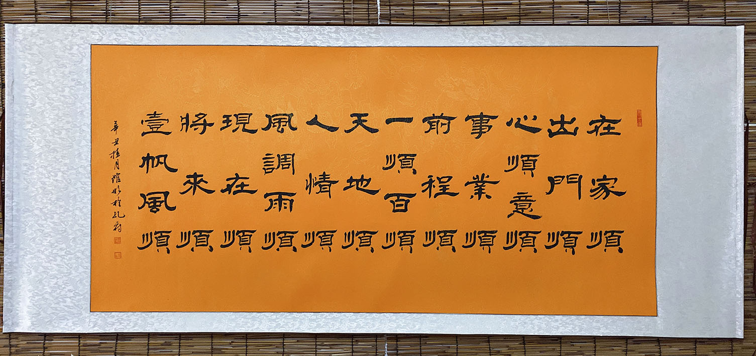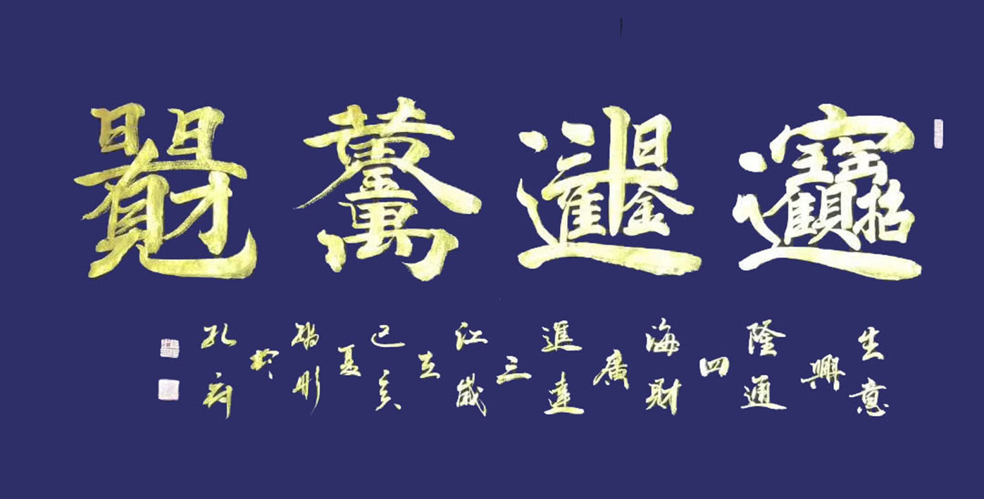 作品(组合字:招财进宝、日进斗金、黄金万两、日日有财),2018年五月曾获纪念孔子诞辰2567年全国书画大赛获金奖。于11月维托广东省中山市国有资产拍卖,以人民币300000元成交。