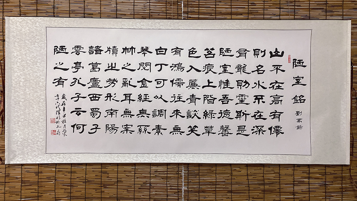 2019年“纪念孔子诞辰2570年优秀书画作品展”论语隶书四条屏获优秀奖。