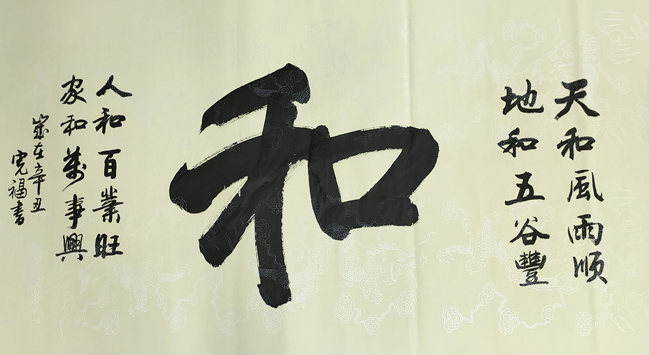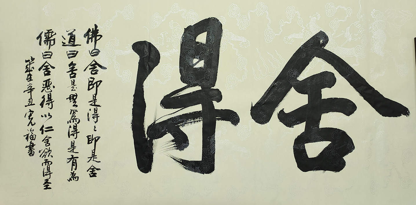 宽福先生故而他与生俱来的豪爽、率真、刚直之性格,淋漓尽致地溶于他书法艺术中。他的书法作品,如行云流水,气魄宏大,意象开阔,潇洒灵动中而又不失本真与严谨。