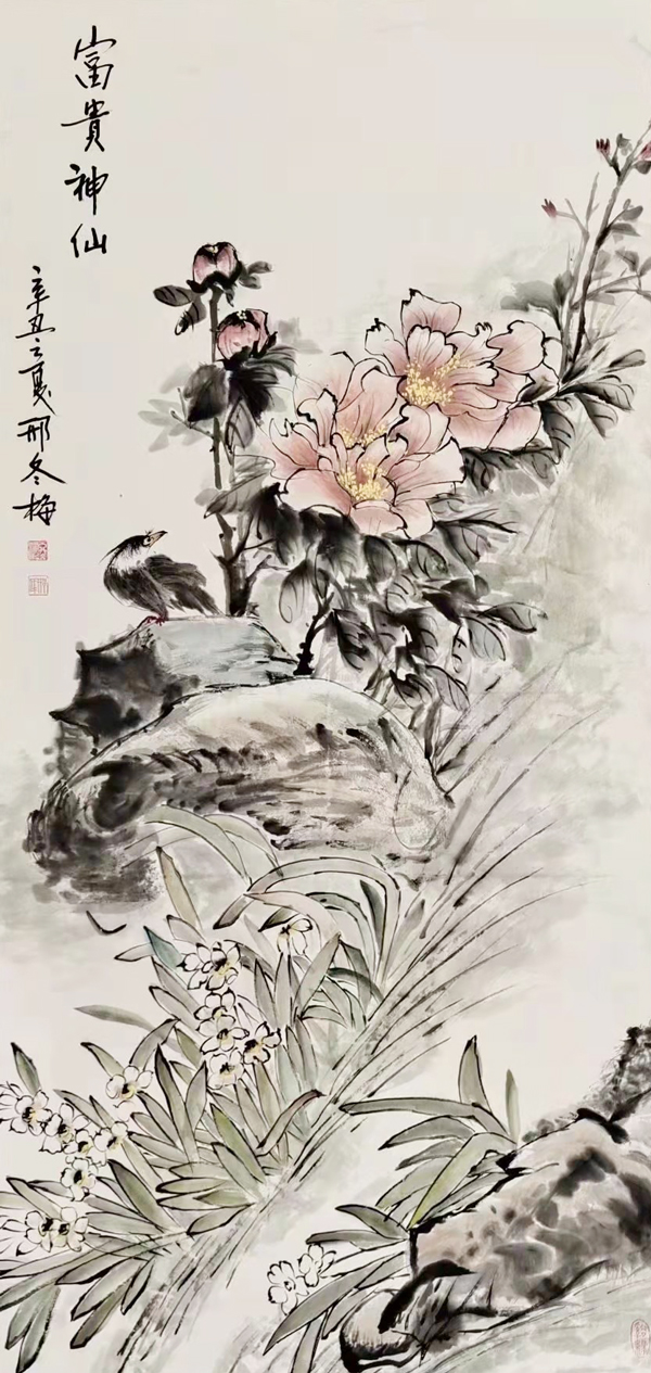 邢冬梅,女,山东济南人,自幼爱好书画,现山东省省书画学会会员,济南市市中区美术家协会会员,紫荆书画院常务副院长,山东省老年书画研究会终身会员,翰墨丹青艺术书研究院理事,济南市艺缘书画研究院研究员,中国新青年书画院会员,启蒙受教于国礼艺术家,国家一 级美术师于源春先生,擅长牡丹,鱼写意花鸟。参加省市地市暨军 旅画展无数次,出画册并收藏。